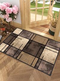 1PC-Khaki Paski Geometryczne Vintage Wycieraczka Drzwi, Nowoczesny Styl Całoroczny Wejścia Mata Z Poliestru, Odporna Na Blaknięcie, Niski Profil, Antypoślizgowa, Łatwa Do Czyszczenia, Nadaje Się Na Patio, Wewnątrz, Na Zewnątrz, Do Ogrodu, Korytarza Wystrój Domu