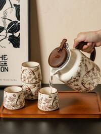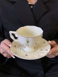 Brodark Global Flagship Store1 Zestaw Ceramiczny Zestaw do Herbaty z Kwiatami, Zawierający Czajnik, Filiżanki i Spodki, Luksusowy Francuski Retro Kwiatowy Popołudniowy Herbatka, Zestaw Do Serwowania Deserów, Eleganckie Wiejskie Przyjęcie Herbaciane, Spotkanie, Prezent, Nadaje Się Do Restauracji, Salonu, Herbaciarni Zestaw 1 filiżanki do kawy i spodka z francuskim złotym rantem i kwiatowym wzorem, zabytkowa, ekskluzywna filiżanka do kawy z płatkami, ekskluzywny kubek deserowy, kubek na mleko śniadaniowe, talerzyk na przekąski, odpowiedni do domu, restauracji, kawiarni, cukierni, prezentu dla przyjaciół, zastawy stołowej, imprezy