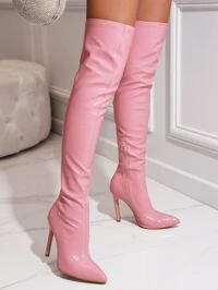 Damskie, szpiczaste, za kolano, obcisłe, rozciągliwe, skórzane kozaki z wysokim obcasem i rozciągliwym zapięciem na suwak z boku, zimowe, jesienne, wysokie buty, idealne do czarnej sukienki, seksowne #2 Bestsellery