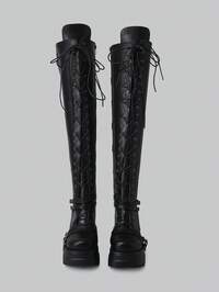DareSeeDareSee Damskie, rozciągliwe kozaki za kolano, grube, blokowe, na platformie, sznurowane, za kolano, buty motocyklowe, gotyckie, punkowe, na wysokim obcasie, czarne, buty dla kobiet, prezenty świąteczne #3 Bestsellery
