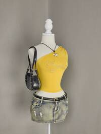 Nowa, stylowa, elegancka, jednokolorowa, uniwersalna, swobodna koszulka z marszczeniami w talii, odpowiednia na co dzień, do szkoły, na plażę, na wakacje, do domu, na lato