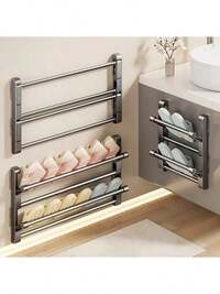 madeby BLANCWieszak na buty montowany na ścianie bez wiercenia, aluminiowy, składany, dwupoziomowy organizer na buty z otworami odpływowymi, rozwiązanie do przechowywania w łazience, domowy stojak na buty, wiszący stojak na buty, odpowiedni do małych przestrzeni, do mieszkania, do przechowywania w łazience, idealny do gospodarstw domowych i wynajmujących, oszczędność miejsca, świetny prezent na parapetówkę lub Boże Narodzenie