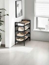 4-poziomowy stojak na buty w kształcie litery Z, wytrzymałe, plastikowe, niezależne pojemniki do przechowywania, zakrzywiony kształt, wielofunkcyjna półka do przechowywania, łatwy montaż stojaka podłogowego, nie wymaga narzędzi, kompaktowa konstrukcja, odpowiedni do salonu lub akademika, możliwość układania w stosy, aby zaoszczędzić miejsce, pojemniki do przechowywania butów, pionowy stojak na buty Magazyn UE