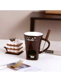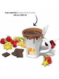 1 zestaw ceramiczny garnek do topienia czekolady, podgrzewacz do sera, garnek do fondue czekoladowego z widelcem, wystrój kuchni i wystrój domu, nadaje się do zimnych napojów, kawy, kubków, napojów, na zewnątrz, piknik, impreza, prezent urodzinowy