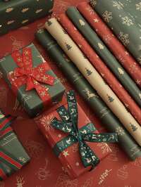 4/8 arkuszy papieru do pakowania prezentów świątecznych – wytrzymały papier świąteczny z motywem Świętego Mikołaja, choinki, HO HO HO!, prezentów, płatków śniegu – kolory czerwony, zielony, złoty, niebieski, biały – do prezentów, kartek, dekoracji – nie wymaga prądu – idealny do użytku osobistego lub komercyjnego, akcesoria świąteczne, dekoracje sezonowe, radosne nadruki, gładka tekstura, świąteczne pakowanie, organizatorzy przyjęć Lokalny