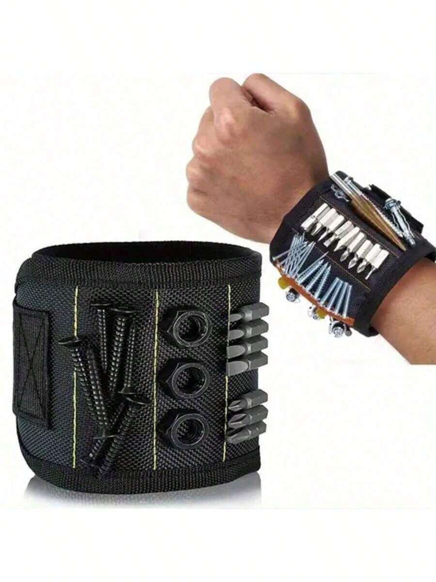 Ręcznie robiona magnetyczna opaska na nadgarstek, regulowany rozmiar, lekka i miękka, nie uciska nadgarstka. Silny magnes przyciąga przyciski, śruby, nity i drobne elementy, umożliwiając swobodną obsługę obiema rękami.