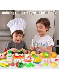 World Toy ShopZestaw do zabawy w kuchni dla dzieci, zabawki do udawania gotowania z realistycznymi garnkami, patelniami, przyborami kuchennymi, jedzeniem do zabawy, owocami, warzywami i deserem, edukacyjny zestaw kuchenny do odgrywania ról dla małych dzieci i przedszkolaków, zestaw do symulacji gotowania rozwijający kreatywność, wyobraźnię i interakcje społeczne, idealna zabawka edukacyjna do zabawy w domu lub w klasie, idealny prezent urodzinowy, zabawka na imprezę halloweenową, prezent świąteczny i noworoczna rozrywka dla całej rodziny