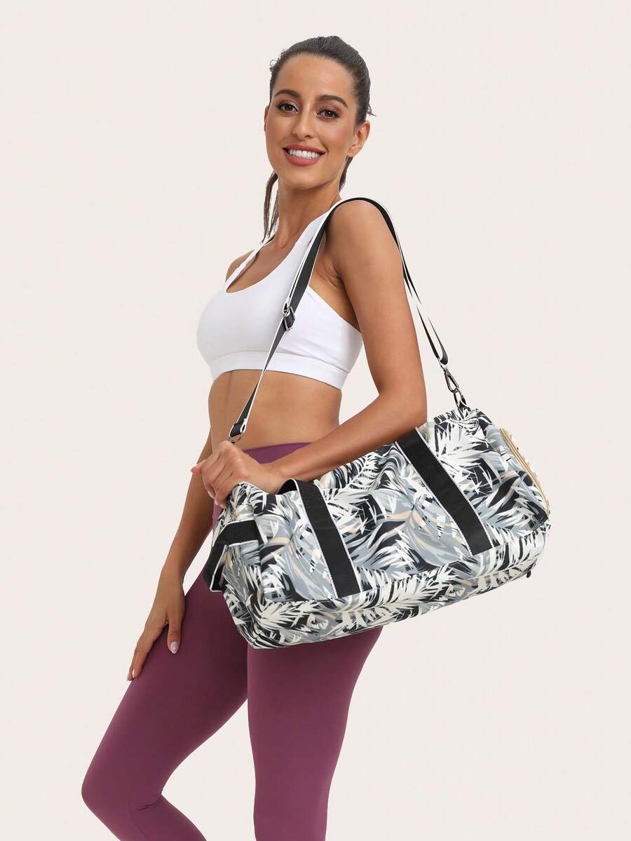Torba na siłownię do ćwiczeń jogi o dużej pojemności z przegrodą na rzeczy suche i mokre, miejscem na buty, może być noszona na ramieniu lub w dłoni.