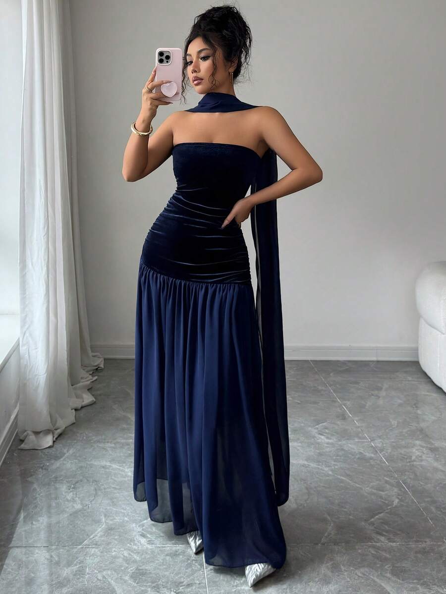 Długa letnia sukienka damska LilyHouse, elegancka, romantyczna sukienka z wdziękiem, idealna na formalne kolacje, przyjęcia świąteczne, codzienne randki i inne okazje. Wzór z satynowej wstążki, dopasowana sukienka bez ramiączek z kontrastowej siateczki, elegancka sukienka na imprezę.
