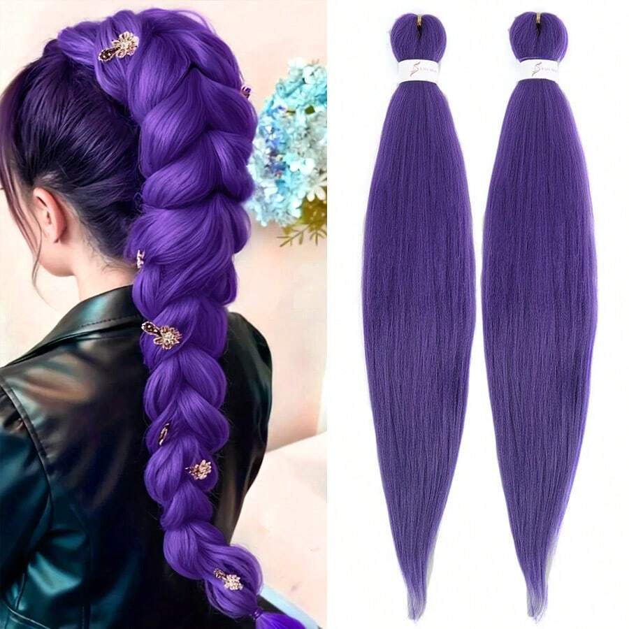 Długie fioletowe warkocze, wstępnie rozciągnięte syntetyczne przedłużki do warkoczy, fioletowe przedłużki do włosów na imprezę sceniczną, kostium na Halloween i Boże Narodzenie