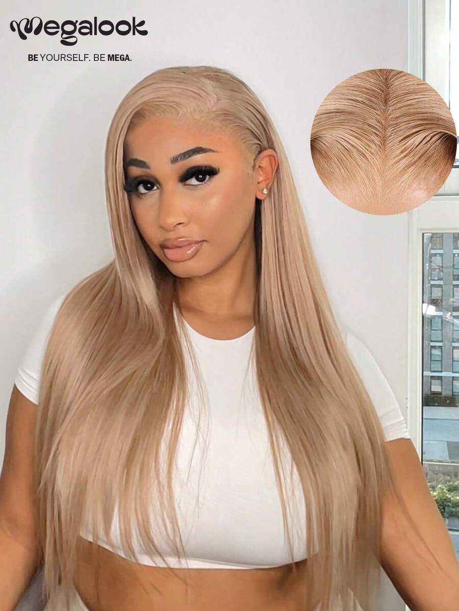 MEGALOOK Peruka z koronką z przodu 13x4, jedwabiście prosta, 100% ludzkich włosów - przezroczysta koronka, wstępnie wyrwana naturalna linia włosów, peruka z koronką z przodu w kolorze miodowego brązu, gęstość 180% - komfort przez cały dzień, odpowiednia do linii włosów w Lagos, do noszenia na co dzień, do biura, na imprezę, w stylu Y2K, na wakacje, na zajęcia na świeżym powietrzu, na niedzielny wypad, na kampus, na przerwę w szkole, na Boże Narodzenie, na powrót do szkoły, na ślub, na Halloween, na święta, na randkę, urocza peruka damska