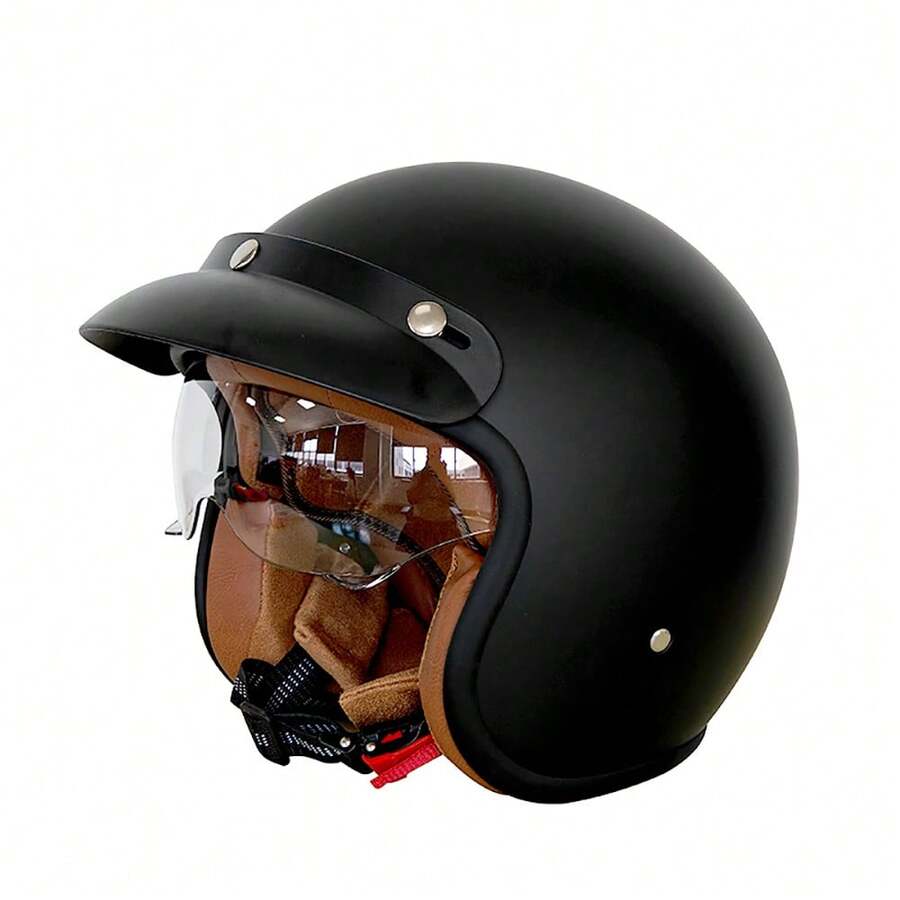 MTN 1 szt. matowy czarny zabytkowy kask motocyklowy z wbudowanym szkłem, odpowiedni do motocykli, skuterów i na każdą porę roku
