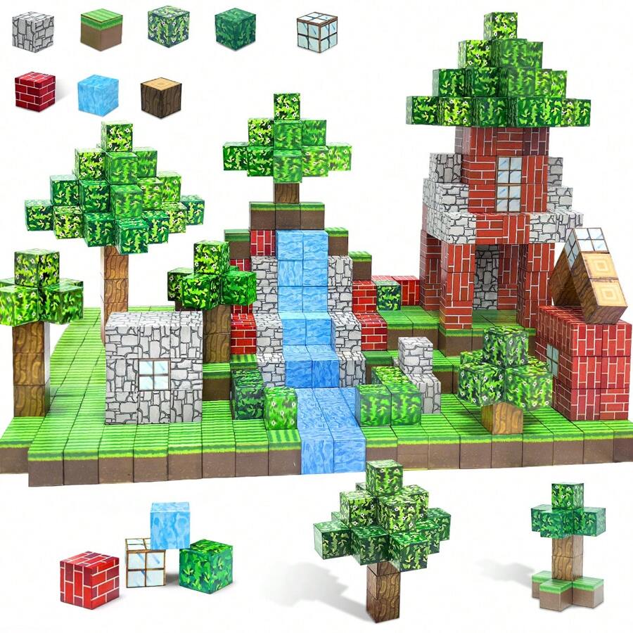 Klocki: zestaw dla dzieci w wieku 3-8 lat do tworzenia magnetycznego świata, zabawki sensoryczne STEM, prezenty do klasy dla chłopców i dziewcząt powyżej 3 lat, klocki magnetyczne dla dzieci, zabawki dla chłopców, motyw roślinny, prezent świąteczny