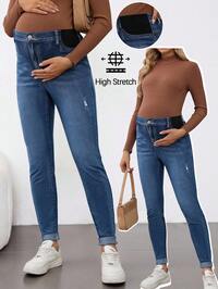SHEIN MaternitySHEIN Swobodne, uniwersalne, wygodne, dopasowane jeansy ciążowe, zimowe, świąteczne, noworoczne, na Święto Dziękczynienia, dojazdy do pracy, wakacje, na ukończenie szkoły, eleganckie, na rok 2000, urocze, streetwearowe, imprezowe, obcisłe jeansy ciążowe z elastyczną talią, idealne na rosnący brzuch, modne, sprane, niebieskie jeansy dla przyszłych mam, codzienne, stylowe jeansy ciążowe, spodnie ciążowe na wiele okazji, uniwersalne, podstawowe, obcisłe jeansy ciążowe na Nowy Rok