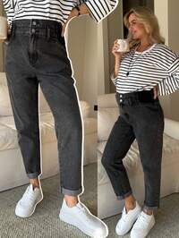 SHEIN MaternitySHEIN Jeansy ciążowe w jednolitym kolorze, dwuwarstwowe, z kieszenią, na co dzień, uniwersalne, na wiosnę, Boże Narodzenie, Nowy Rok, Święto Dziękczynienia, dojazdy, wakacje, ukończenie szkoły, szykowne, Y2k, urocze, streetwear, kokietka, impreza, wesele, eleganckie, biznesowe, swobodne, damskie