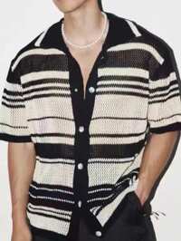 w Przód zapinany na guziki Męskie bluzki dzianinowe