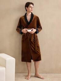 EverLoungeEverLounge Wygodny, pluszowy, puszysty i przytulny szlafrok w stylu brytyjskim, lśniący, ciepły, w kontrastowym kolorze, luksusowy, odpowiedni do wypoczynku, spotkań rodzinnych, z odkrytym przodem, męski, zimowy #7 Bestsellery