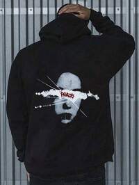 Manfinity EMRGManfinity EMRG Męska bluza z kapturem, w jednolitym kolorze, zapinana na zamek, w dużym rozmiarze, styl vintage, personalizowana, na wakacje, męska, na imprezę, Y2K, lato, festiwal, Nowy Rok, wyszukiwanie, podwójna konstrukcja maski na twarz i czapki #8 Bestsellery