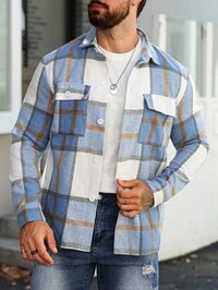 Manfinity Homme Męska kurtka koszulowa, męska kurtka koszulowa z długim rękawem i kieszenią z przodu, prosta, codzienna odzież, męska kurtka, męska kurtka koszulowa, męska kurtka jesienno-zimowa, prezent dla chłopaka, ciepła, wyjściowa, swobodna, flanelowa kurtka z długim rękawem #1 Bestsellery