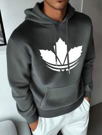EasyWearMęska, nowa, swobodna bluza ze ściągaczem, prosty nadruk liścia klonu, ciepła i wygodna, odpowiednia na wyjścia ze znajomymi, drużyny, kluby, zimowe podróże na świeżym powietrzu, codzienna odzież codzienna i na siłownię, lekka bluza sportowa, uniwersalna bluza ze ściągaczem Bluza męska w stylu Boyfriend, sportowa, casualowa, żakardowa, męska, w kratę, w stylu Boyfriend, na zewnątrz, z aksamitu, pogrubiona, dla mężczyzn w stylu Boyfriend