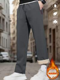 MAISONFOXMęskie grube, termiczne spodnie w jednolitym kolorze z prostymi nogawkami, funkcjonalne spodnie z szerokimi nogawkami i klamrą, męska odzież termiczna, ciepłe długie spodnie męskie, męskie spodnie dresowe, męskie spodnie casualowe, męskie spodnie dresowe, długie spodnie męskie, prezent dla przyjaciół, męża, chłopaka