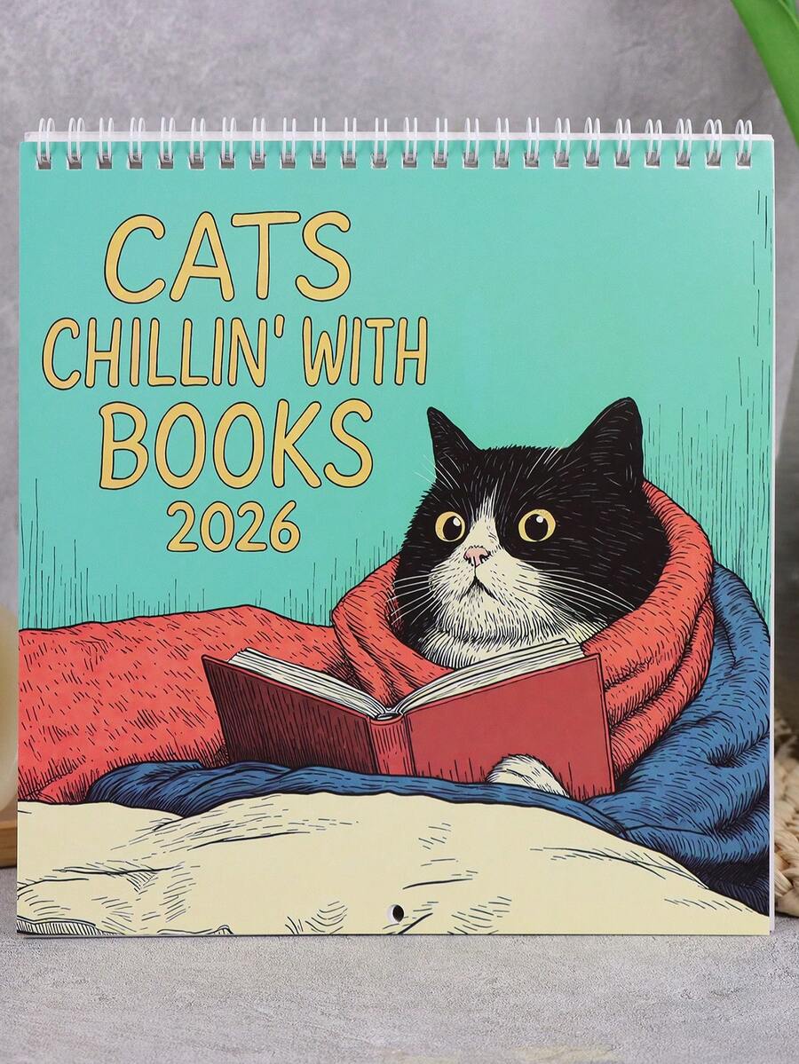 Miesięczny kalendarz ścienny z uroczym wzorem kota, wiszący kalendarz ścienny na rok 2026 do salonu, sypialni, domu, dekoracji ściennych dla miłośników kotów