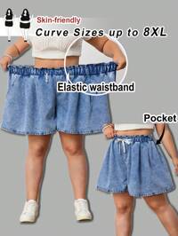 SHEIN MOD Szorty jeansowe w dużym rozmiarze, luźne, z elastyczną talią i szerokimi nogawkami, niebieskie, na Dzień Świętego Patryka, na co dzień, na święta, na imprezy, święta, randki, Walentynki, na popołudniową herbatę, na wiosenne i letnie wakacje, na plażę #5 Bestsellery