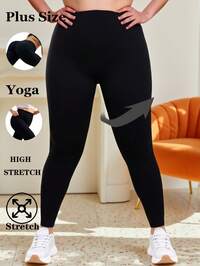 SHEIN Essnce Damskie legginsy sportowe w dużych rozmiarach, wiosenne i jesienne, z wysokim stanem i elastyczną talią, wygodne, czarne, dopasowane, damskie spodnie, odzież uliczna, spodnie Curve, spodnie Basic, jesienne stylizacje, spodnie Y2K #1 Bestsellery