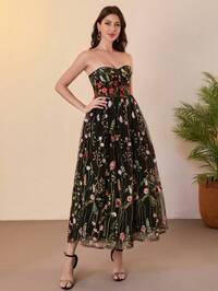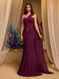 Glamrae Elegancka, luksusowa, asymetryczna, dopasowana sukienka z francuskim haftem, bez ramiączek, z asymetrycznymi ramionami i cekinami, z marszczeniami w talii i rozkloszowanym dołem, idealna na festiwale, wesela, gale, koncerty, wydarzenia biznesowe i spotkania z influencerami w mediach społecznościowych#1 Bestsellery
