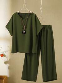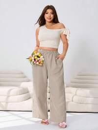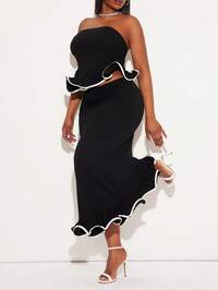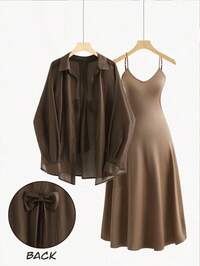Breezaya CURVEElenzga Sukienka maxi w dużym rozmiarze z okrągłym dekoltem, bez rękawów, z satynowej tkaniny tkanej, w kształcie litery A, z rękawem 3/4, teksturowaną, haftowaną siateczką, asymetrycznym dołem, bez kołnierzyka, na co dzień, na wakacje, 2 sztuki #2 Bestsellery