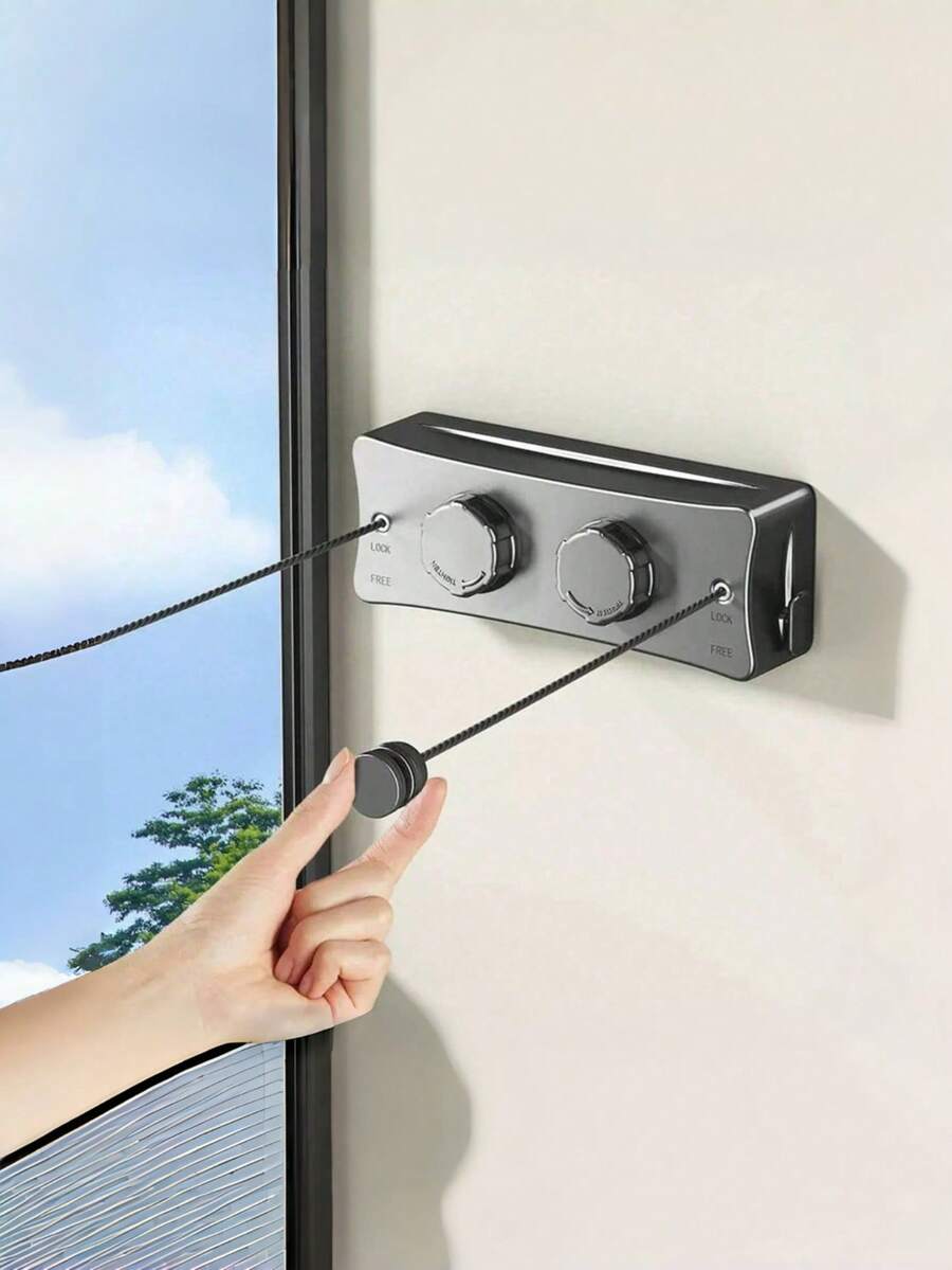 Rozwijana niewidoczna wewnętrzna/balkonowa stalowa linka do suszenia ubrań, łazienkowa rozwijana linka do suszenia ubrań, wiosenna, minimalistyczna, letnia
