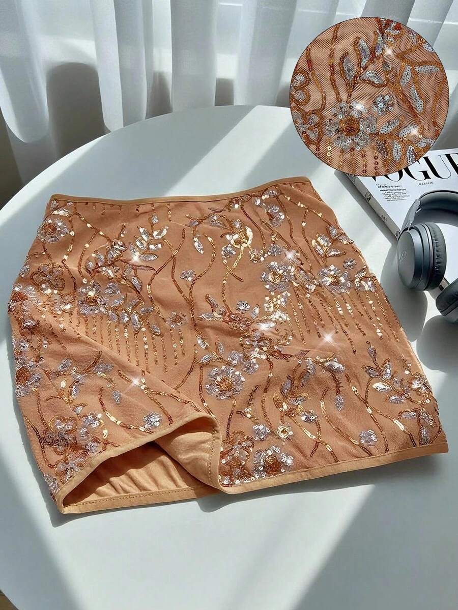 Modelyn Elegancka krótka spódniczka mini z haftowanymi cekinami