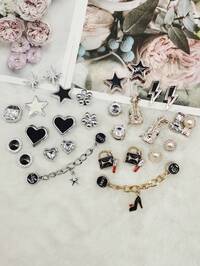 2 szt. akcesoriów na wysokie obcasy, ozdoby do butów, łatwe do zakładania i zdejmowania, odpowiednie do wysokich obcasów, butów ślubnych, na zewnątrz, na wesele, imprezę, do domu, na wakacje, do szkoły, do biura i na inne okazje 4 sztuki kolorowych sznurówek z żywicy w stylu kreskówki, zabawne motyle, klamry do sznurówek, błyszczące wisiorki do butów w kształcie wiśni i biedronki, dekoracje DIY, zdejmowane sztuczne perły, klipsy do butów w kształcie rozgwiazdy, akcesoria, damskie sznurowane trampki, buty, Boże Narodzenie, Halloween, Walentynki, urodziny, festiwal, prezenty na imprezę (buty nie są dołączone) 5 sztuk kolorowych świątecznych wisiorków do butów w kształcie płatka śniegu, dzwonka Świętego Mikołaja, spersonalizowanych zawieszek do sznurówek z wiśni, kryształków, choinki z kapeluszem, cukierkowych klamer do butów, dekoracji DIY, zdejmowanych sztucznych pereł, girlandy z rozgwiazdami, klipsy do sznurówek, akcesoria, damskie sznurowane buty, trampki, Boże Narodzenie, Halloween, Walentynki, urodziny, festiwal, prezenty na imprezę (buty nie są dołączone) 14 szt. w stylu vintage, złote, srebrne, żywiczne, skrzypcowe zawieszki do butów, DIY, akcesoria, punkowe łańcuchy do butów, dekoracje, czarne, serduszkowe, gwiazdy, klamry do butów, dekoracje, zabawny wzór, zdejmowane klipsy do butów, pasujące do sandałów damskich, klapek, torby plażowej, prezentów na Halloween i urodziny 22 sztuki kolorowych, luksusowych ozdób do butów z żywicy ABS w kształcie kwiatów, błyszczące klipsy do butów z kryształkami, odpinane sztuczne perły do butów, wielofunkcyjne klipsy do butów DIY, odpowiednie do damskich sandałów, kapci, toreb plażowych itp., na Boże Narodzenie, Halloween, Walentynki, urodziny, dekoracje i prezenty (buty nie są dołączone)