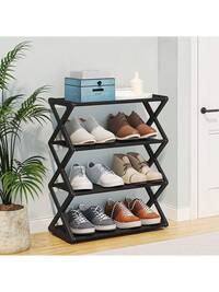 4-poziomowy stojak na buty w kształcie litery Z, plastikowa półka podłogowa, wielofunkcyjny regał o dużej pojemności, łatwy w montażu organizer stojący na podłodze, odpowiedni do salonu, nie wymaga narzędzi, składany, niezbędny w domu i akademiku, oszczędzający miejsce, odpowiedni do korytarza, garderoby, salonu i sypialni #1 Bestsellery