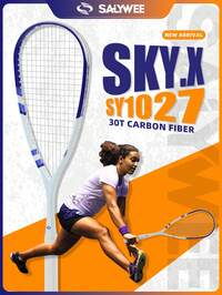 SALYWEE Zestaw rakiet do squasha SKY.X Pro-Grade 30T Full Carbon | 149 g (bez naciągu), ultralekka, z teksturowanym wzorem 3D | Układ strun 12x17 | Rama antyskrętna | Wysokiej jakości biały flanelowy pokrowiec + taśma antypoślizgowa o losowym gradiencie + żółty tłumik drgań - pomarańczowo-niebieski premium