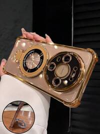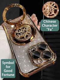GenyCaseLuksusowe, galwanizowane złote etui na telefon, kreatywna podstawka z chińskim znakiem "Fa" – pomyślne znaczenie, błyszczące cyrkonie, styl Y2K, odporne na wstrząsy, letnia, nowa, modna, miękka silikonowa osłona ochronna, odpowiednia do 'ów 17/16/15/14/13/12/11/X/XS/XR/8/7 Plus/Pro/Max/Mini, Galaxy S24/S25 Ultra, Redmi, Honor, OPPO Reno, MOTO Infinix, unisex, model 2025