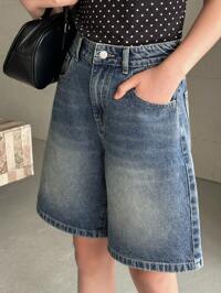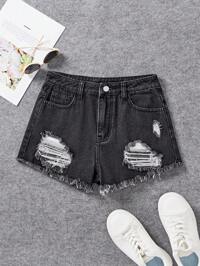 NyonaSHEIN Krótkie, proste, jeansowe spodenki dla nastolatek w stylu Y2K, wiosna/lato, lekkie, sprane, z niskim stanem i ukośnymi kieszeniami, letnie, plażowe, boho, wakacyjne, letnie, koncertowe, festiwalowe, casualowe, rave'owe, dziewczęce, letnie, brunchowe, na zakończenie szkoły, streetwear, stroje na powrót do szkoły