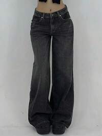 SHEIN Moda dla nastolatek, swobodna, vintage, letnia, powrót do szkoły, jesień i zima, granatowy denim, polarowa podeszwa, polar dla ciepła, luźne i wygodne dżinsy dla nastolatek, miękkie ubrania codzienne dla nastolatek, zimowe i jesienne stroje rave, festiwale i stroje, ubrania uliczne #3 Bestsellery