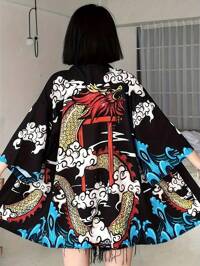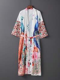 Luźny, retro, boho, średniej długości, elegancki, spersonalizowany, modny kimono, narzutka z nadrukiem pawia, codzienny szlafrok wiązany w talii, cienka odzież wierzchnia na letnie wakacje na plaży, narzutka na strój kąpielowy Kimono średniej długości z nadrukiem w stylu vintage z paskiem, cienkie, lekkie, miękkie i przyjazne dla skóry, elegancki styl europejski i amerykański, odpowiednie na co dzień, odzież uliczną, plażę, podróże, krem z filtrem przeciwsłonecznym, szlafrok, przyjęcie świąteczne, mundur drużyny, rękaw 3/4 Tradycyjna japońska piękna, graficzna, satynowa kurtka kimonowa o średniej długości i rękawach 3/4, elegancka, swobodna, luźna odzież wierzchnia dla kobiet, odpowiednia na plażę, podróż, wakacje, strój domowy, szlafrok, imprezę, szlafrok Unisex długa, długa, kwiatowa, narzutka kimono z nadrukiem pawia, cienka i lekka kurtka, elegancki , odpowiednia na wiosnę, jesień, na co dzień, na plażę, w podróż, luźny krój, narzutka na szlafrok #8 Bestsellery