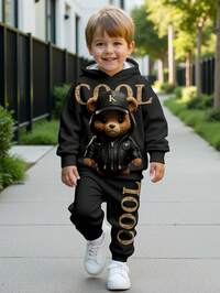 SHEIN Zestaw dla chłopców w stylu koreańskim, luźny krój, bluza z kapturem i nadrukiem, idealny na jesień i wiosnę, do zabawy na świeżym powietrzu, do szkoły, na styl uliczny, na imprezę i wypoczynek, dres, strój dla chłopców, ubrania na powrót do szkoły