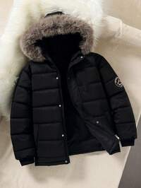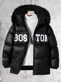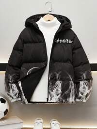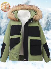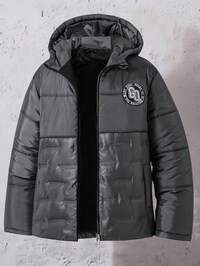 SHEIN Tween Boy Casual School Style Badge Contrast Color Block Hooded Thick Cardigan, odpowiedni do szkoły, ogrodu, na plażę, na urodziny, na jesień, wiosnę, lato, zimę, czarny, brązowy SHEIN Kurtka z kapturem dla chłopców w wieku nastoletnim, odblaskowa, błyszcząca, wiatroszczelna i ciepła, odpowiednia na jesień, zimę i wiosnę, idealna do zabawy na świeżym powietrzu, do szkoły, na ulicę, na imprezę i do domu, wysoka wydajność i stosunek ceny do jakości