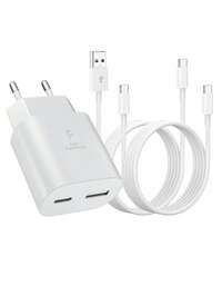 Ładowarka USB-C, szybkie ładowanie z dwoma portami USB-C o mocy 25 W, z kablem szybkiego ładowania USB/USB-C do Type-C o mocy 60 W, długość 100 cm, kompatybilny z serią 16/15, kabel ładujący, certyfikaty CE i RoHS, z portami USB-C i USB-A, do modeli 16, 16e, 16 Pro, 15, kompatybilny z modelami S25, S24, S23, prezent świąteczny/dla rodziny #8 Bestsellery
