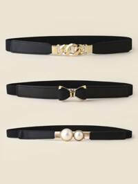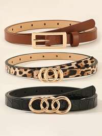 3-częściowy złoty pasek z kwadratową klamrą, skórzany, na co dzień, modny i elegancki, do sukienek, koszulek, spodni casualowych, na lato, do szkoły, na jesień, na Halloween #3 Bestsellery