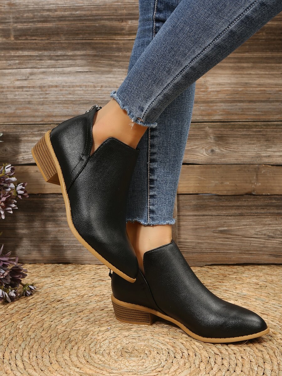 Kobiety Czarny Zamek błyskawiczny z tyłu Buty za kostkę , Noski w szpic Grube obcasy Buty za kostkę