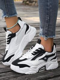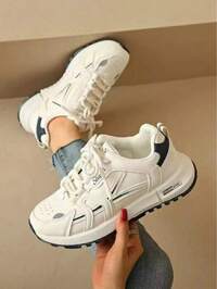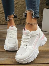 Damskie wiosenno-jesienne, nowe, casualowe, grube trampki, oddychające, wsuwane buty na platformie z grubą podeszwą, lekkie i uniwersalne, modne trampki, sznurowane, białe, casualowe buty, buty do biegania #6 Bestsellery