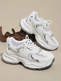 Damskie wiosenno-jesienne, nowe, swobodne, grube trampki, siateczkowe, oddychające, z grubą podeszwą, na obcasie typu wedge, buty rekreacyjne, lekkie, uniwersalne, modne, sznurowane, biało-szare, codzienne trampki, odpowiednie na każdą porę roku #2 Bestsellery