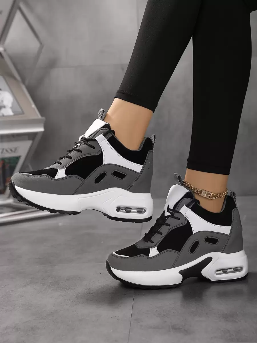 Damskie sznurowane trampki na koturnie Colorblock, sportowe trampki na koturnie