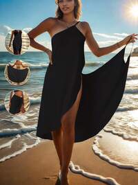 MORIJednokolorowa sukienka maxi z odkrytymi plecami i wiązaniem na szyi, damska wiosna/lato, nowa, modna, elegancka, swobodna, na imprezę, podróż, wakacje na plaży, długa sukienka z dzianiny z wysokim rozcięciem, uniwersalna, dopasowana, seksowna sukienka maxi z wiązaniem na szyi #6 Bestsellery