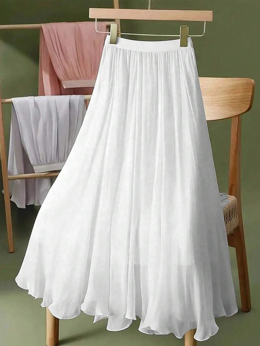 Spódnica z szyfonu w jednolitym kolorze, elastyczna, średniej długości, z podszewką, elegancka i wyszczuplająca, odpowiednia na wiosnę/lato, dojazdy do pracy, odzież na wakacje