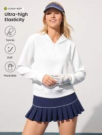 CourtClassCourtClass Damska sportowa kurtka golfowa, kontrastowa, zapinana na zamek, z długim rękawem i otworem na kciuk, z kapturem, dopasowany krój, czarna, odpowiednia na co dzień, do biegania, jogi, na siłownię, do tenisa, do golfa jesienią/zimą